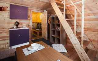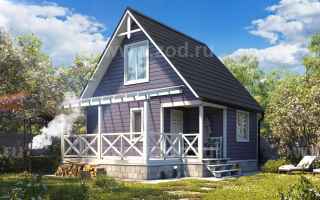 Ваша дачная жизнь может начаться именно с этой постройки. Выбрав её, Вы будете иметь у себя на участке и баню, и дачный дом, и домик для гостей. Такая универсальность объясняется планировкой. На первом этаже располагается парная, душевая и комната отдыха, которая в зависимости от особенностей эксплуатации дома может использоваться как небольшой, но уютный зал. Мансарда, если её грамотно меблировать, превращается в спальню, либо в дополнительную комнату отдыха, где можно уединиться. Небольшая терраса придаёт этой бане законченный нарядный вид, особенно, если её декорировать цветами.