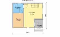 Ваша дачная жизнь может начаться именно с этой постройки. Выбрав её, Вы будете иметь у себя на участке и баню, и дачный дом, и домик для гостей. Такая универсальность объясняется планировкой. На первом этаже располагается парная, душевая и комната отдыха, которая в зависимости от особенностей эксплуатации дома может использоваться как небольшой, но уютный зал. Мансарда, если её грамотно меблировать, превращается в спальню, либо в дополнительную комнату отдыха. Небольшая терраса придаёт этой бане законченный нарядный вид.